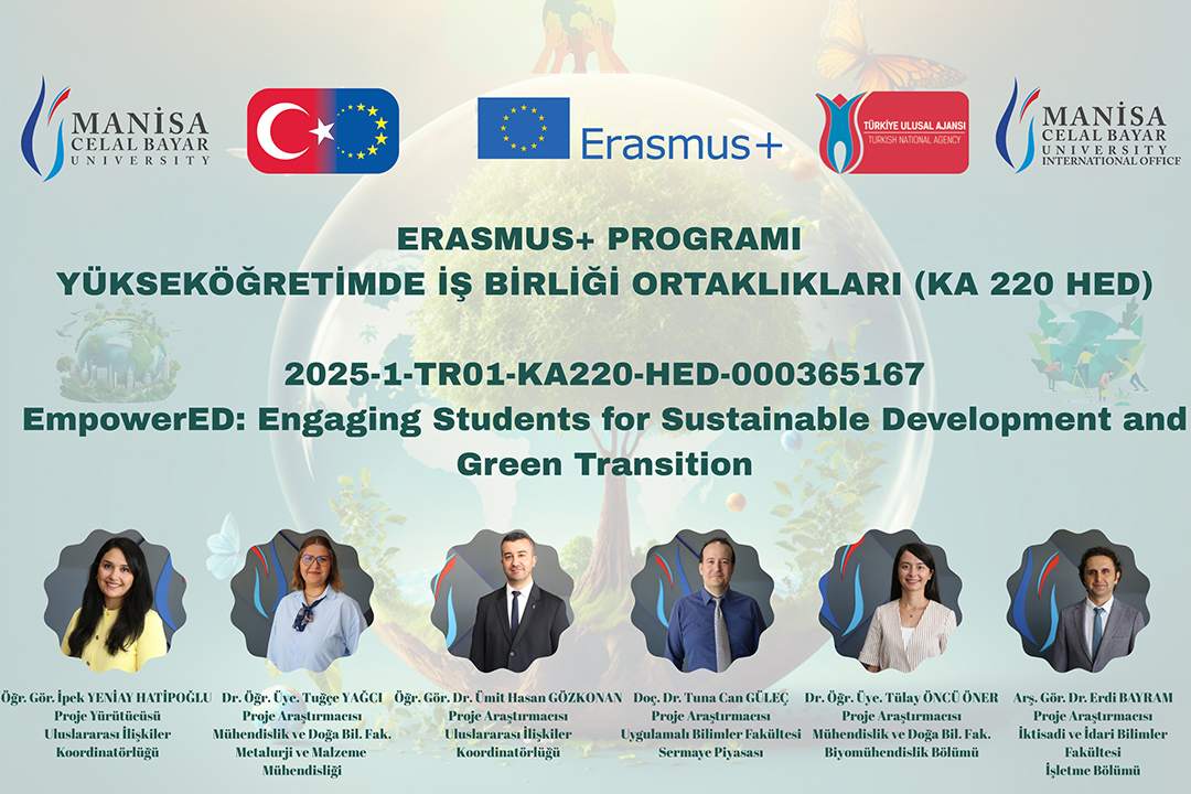 Manisa Celal Bayar Üniversitesi, Erasmus+ KA220-HED (Yükseköğretimde İş Birliği Ortaklıkları) programı kapsamında sunduğu “EmpowerED: Engaging Students for Sustainable Development and Green Transition” başlıklı proje ile koordinatör kurum olarak 250.000 Avro hibe almaya hak kazandı.