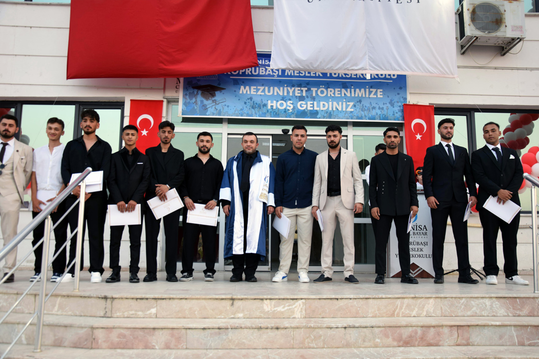 The 30th Graduation Ceremony of Manisa Celal Bayar University Köprübaşı Vocational School was held with great enthusiasm in the school yard. The ceremony was attended by Köprübaşı District Governor Hüseyin Bütüner, Deputy Mayor Mehmet Bağcıoğlu, Rector's Advisor Assoc. Prof. Dr. Mustafa Erkan Turan, Köprübaşı Vocational School Director Assoc. Prof. Dr. Ali Yurddaş, district protocol, academic and administrative staff, students, and their families.